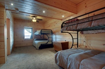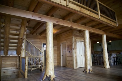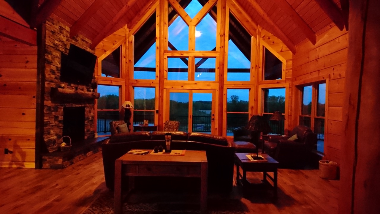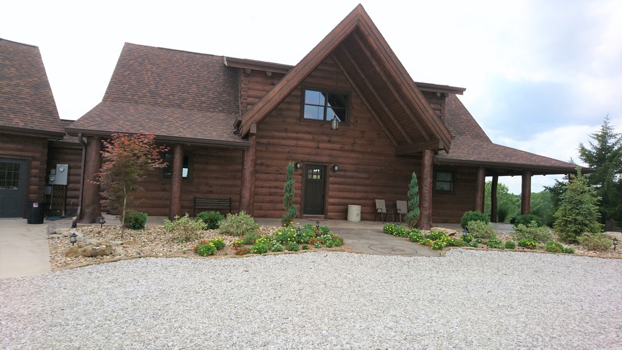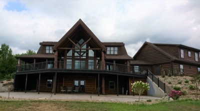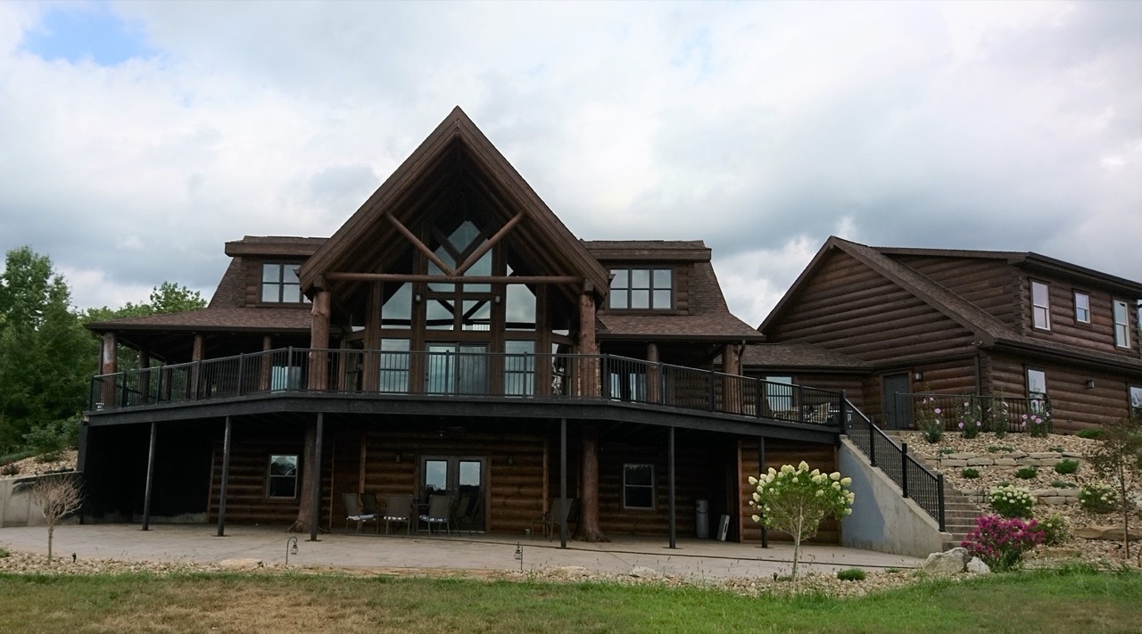 Newly built, full log construction 3750 sq. ft. lodge with 4 bedrooms and 4 ½ baths. Located 4 ½ miles from I-172, I-336 near Loraine, Illinois.