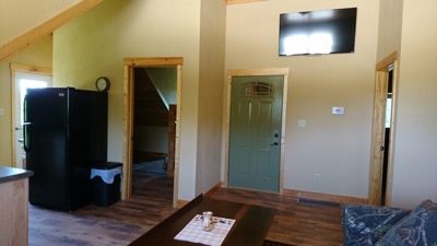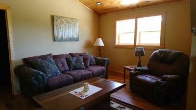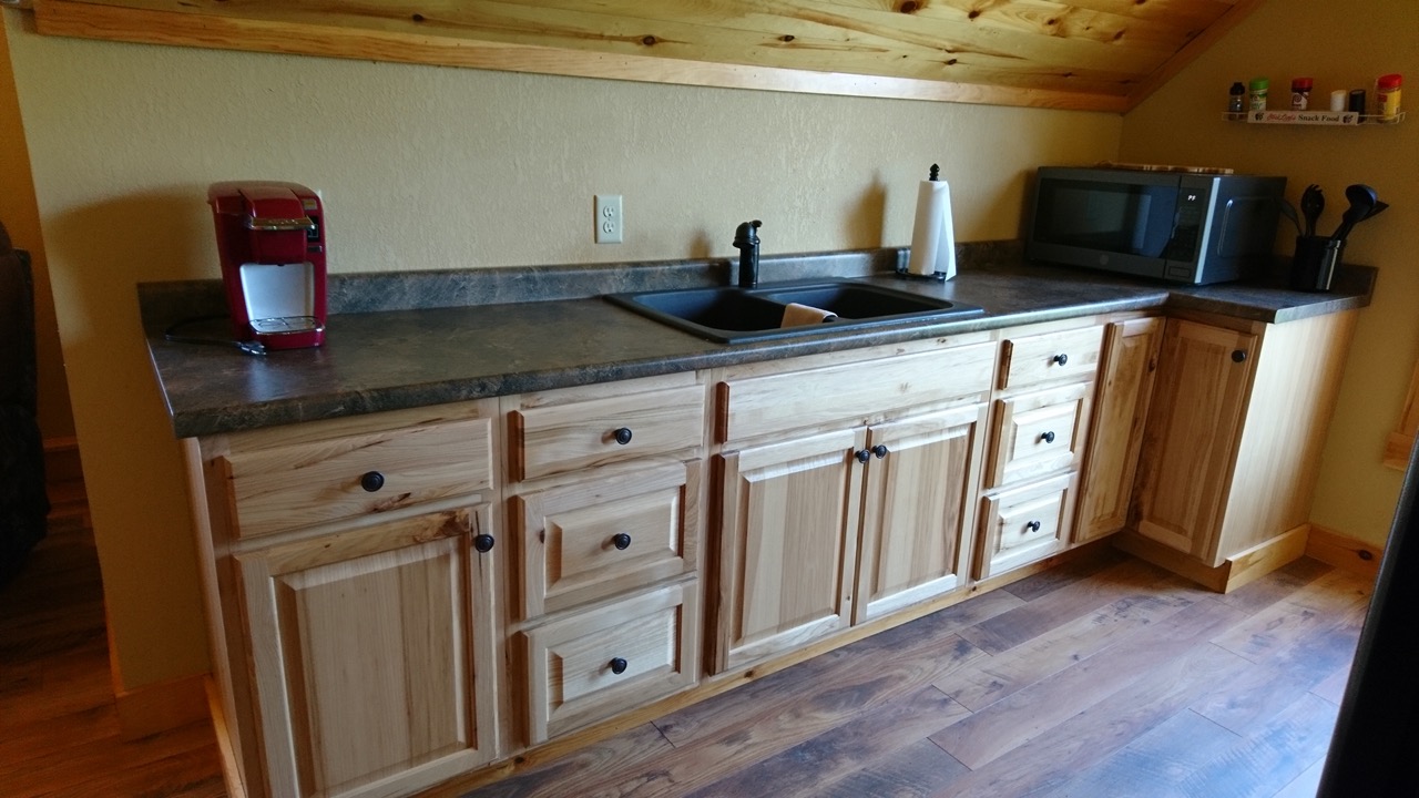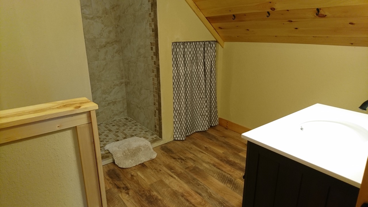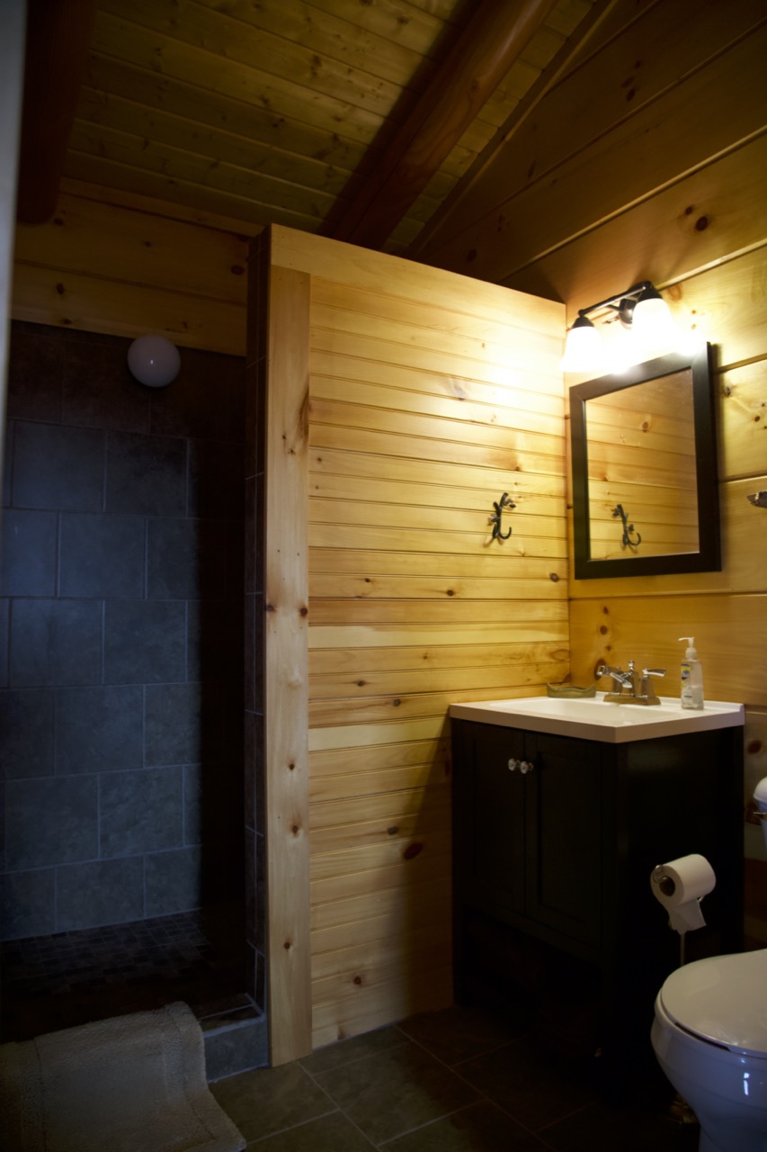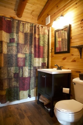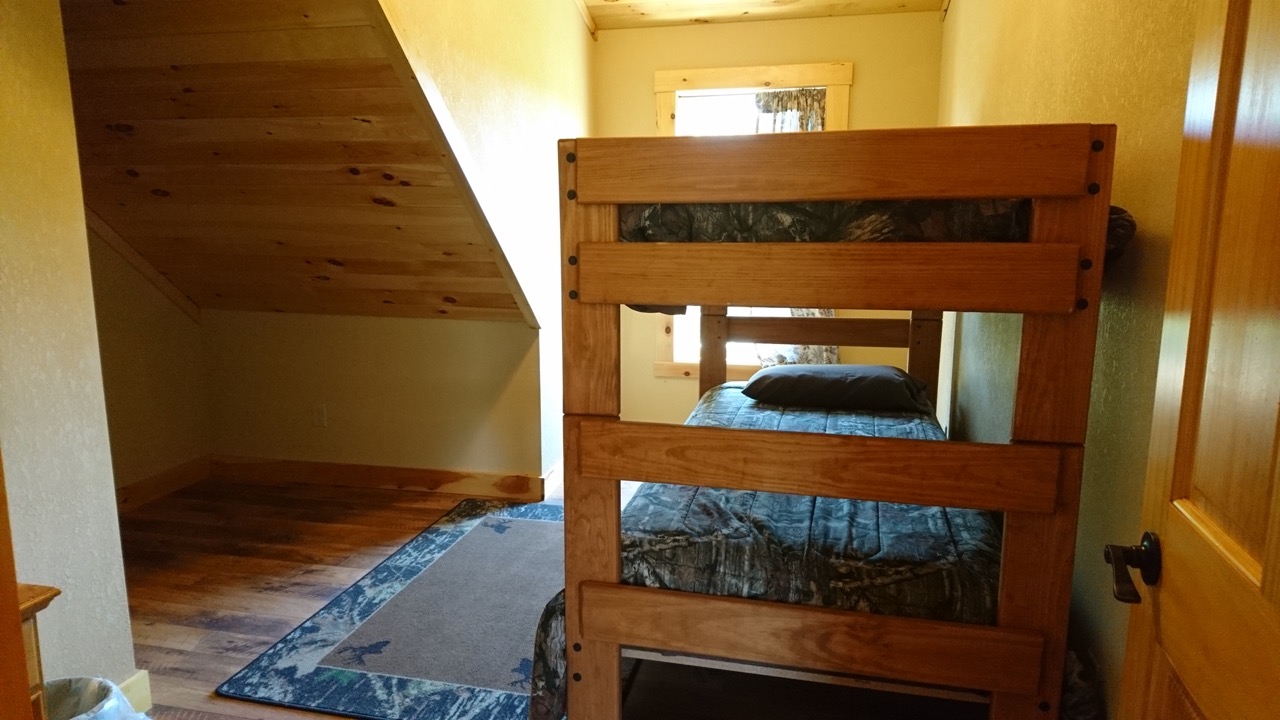 Located in a very private setting overlooking Bear Creek in Adams County, the lodge can sleep up to 13 people. Two bedrooms are in the loft, one with ensuite bath. Two bedrooms are on the lower level, one with ensuite bath (this bedroom is Bunkroom style and sleeps up to 6). The full kitchen is stocked with appliances and dishes. There is also a BBQ grill and fireplace. The lower level has a mini-kitchen.